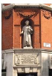 The inset photographs are of London’s Carey Street Bankruptcy Court, located in the Sir Thomas More Building, just down the road from London’s main Royal Courts of Justice complex. This Covent Garden web guide provides the following interesting background to the bankruptcy court and the street — once known as "Queer Street" — on which it resides: