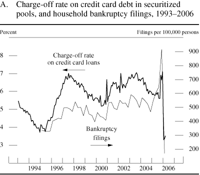 FYI, the graph is taken from a July 2006 Bulletin of the Federal Reserve Board, under the subheading entitled, The New Bankruptcy Law and Its Effect on Credit Card Loans.